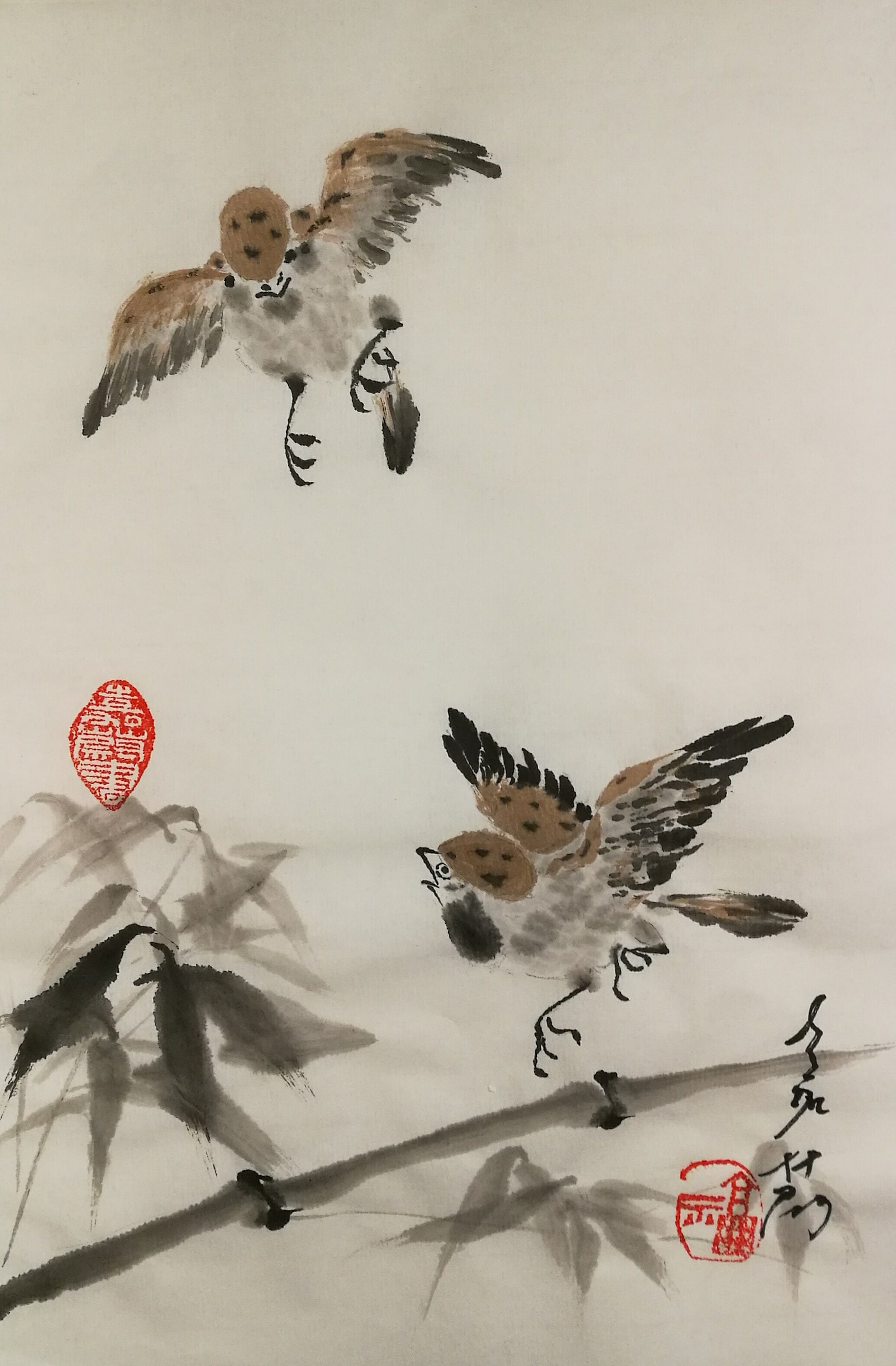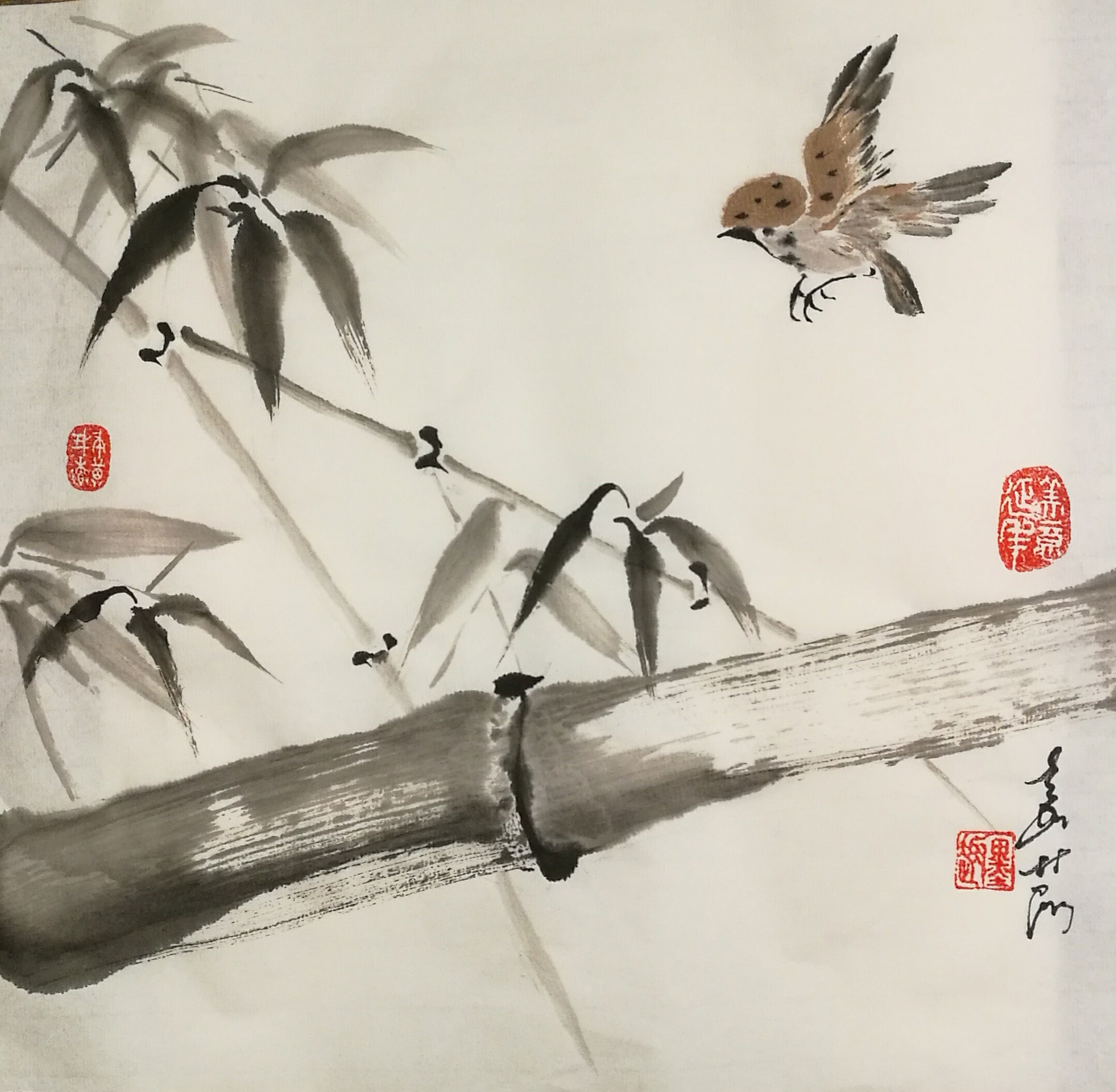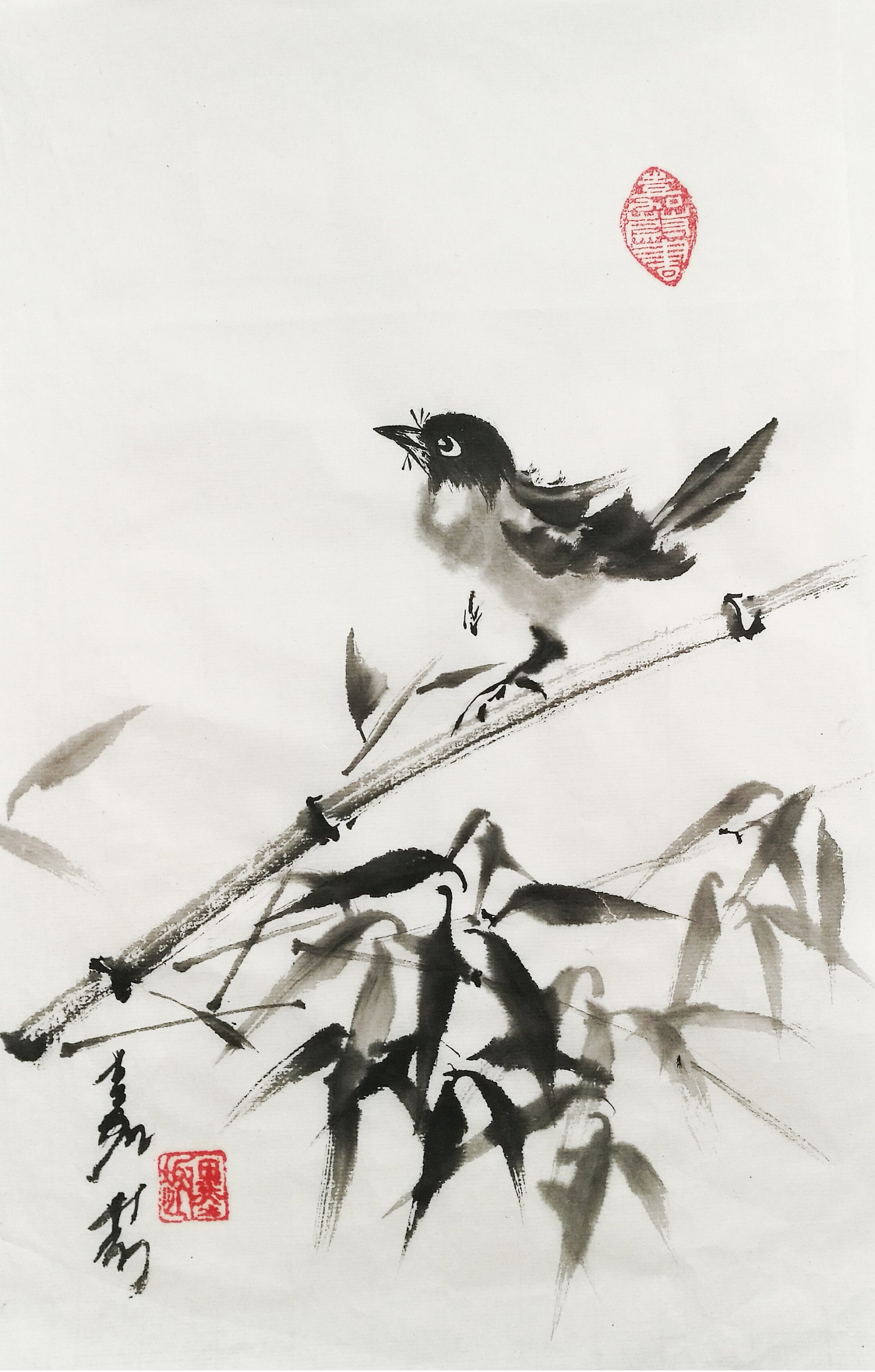 Chinese Traditional Water-Ink Painting - Bamboo and Bird