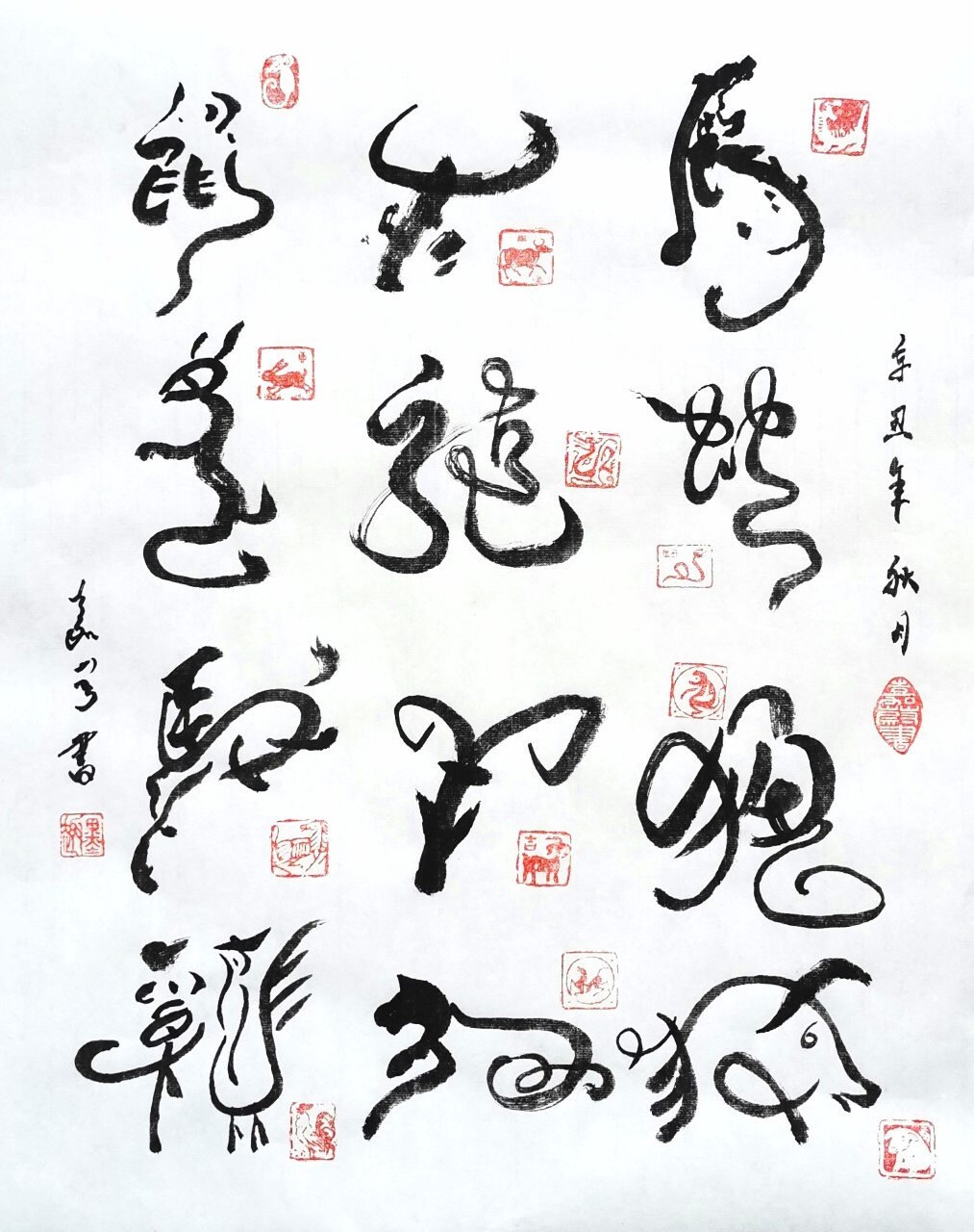 Chinese Traditional Calligraphy - 12 Zodiac Oracle