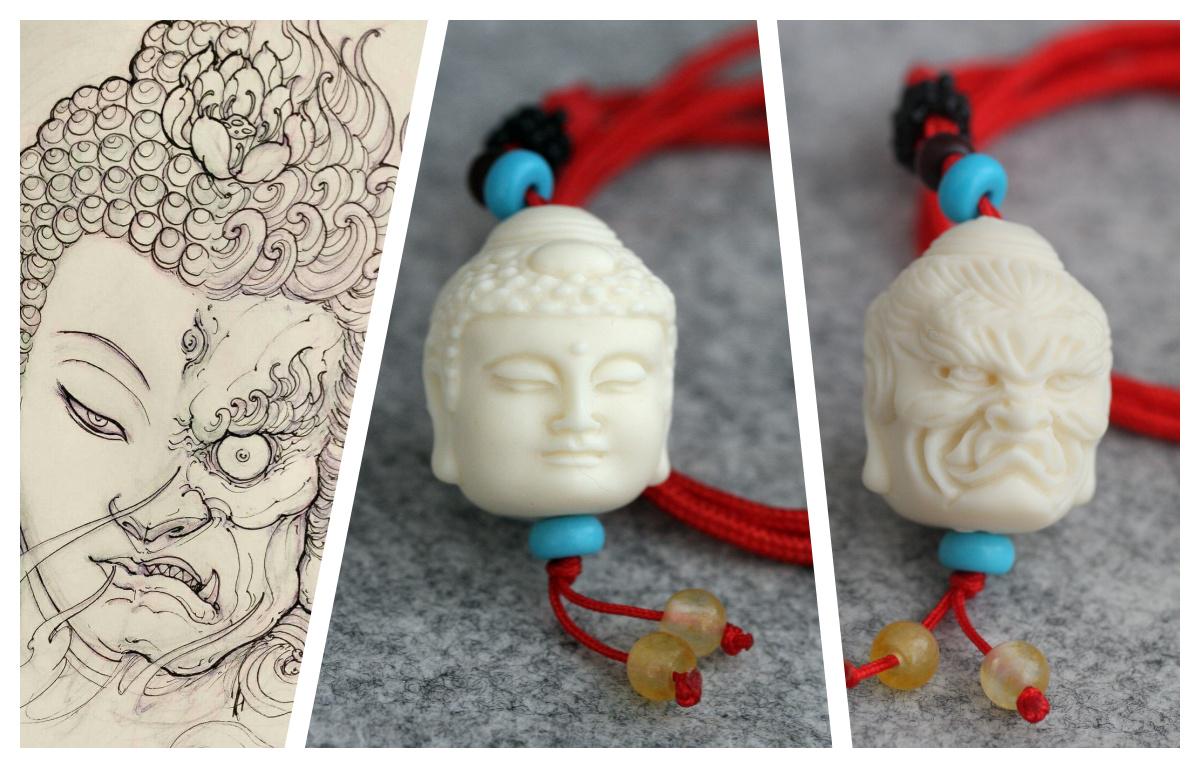 This pendant shows Buddha and Devil in each side, means: Good and evil exist in a mere instant, all in a thought.
