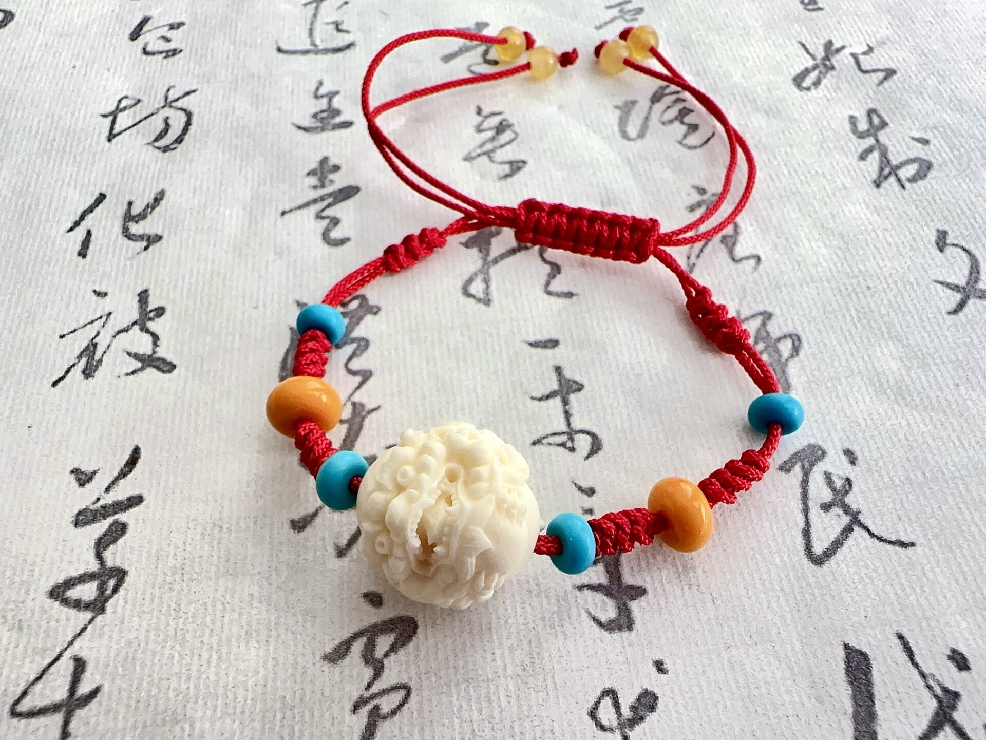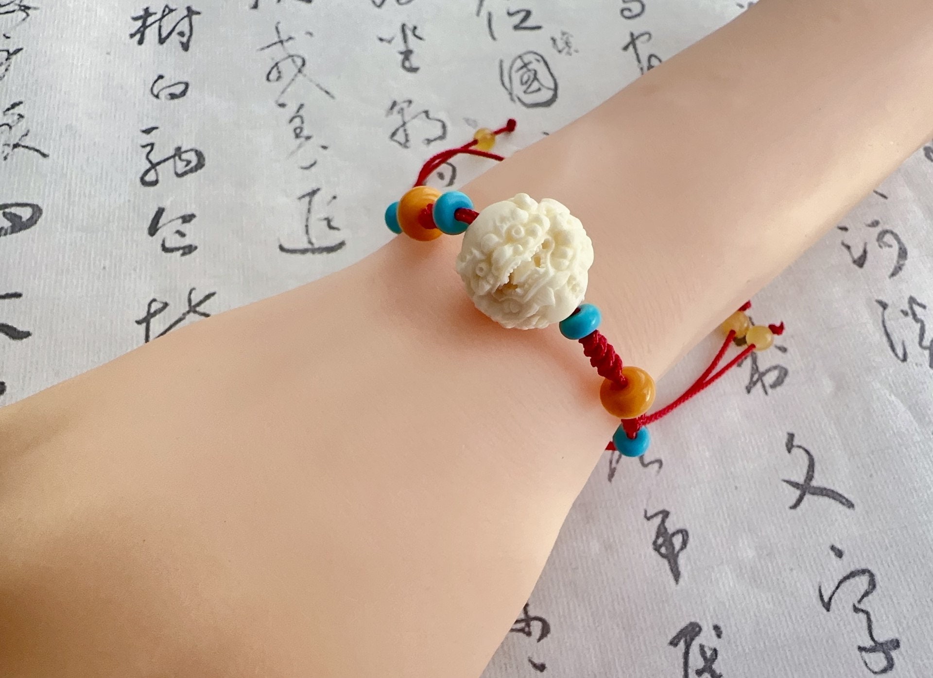 Bring luck and protection wherever you go. This handmade bracelet features a hand-carved Pixiu bead crafted from natural Tagua Nut(Ivory Nut) . a sustainable "vegetable ivory". Symbolizing wealth, strength, and positive energy, it´s finished with a woven adjustable cord for everyday wear.