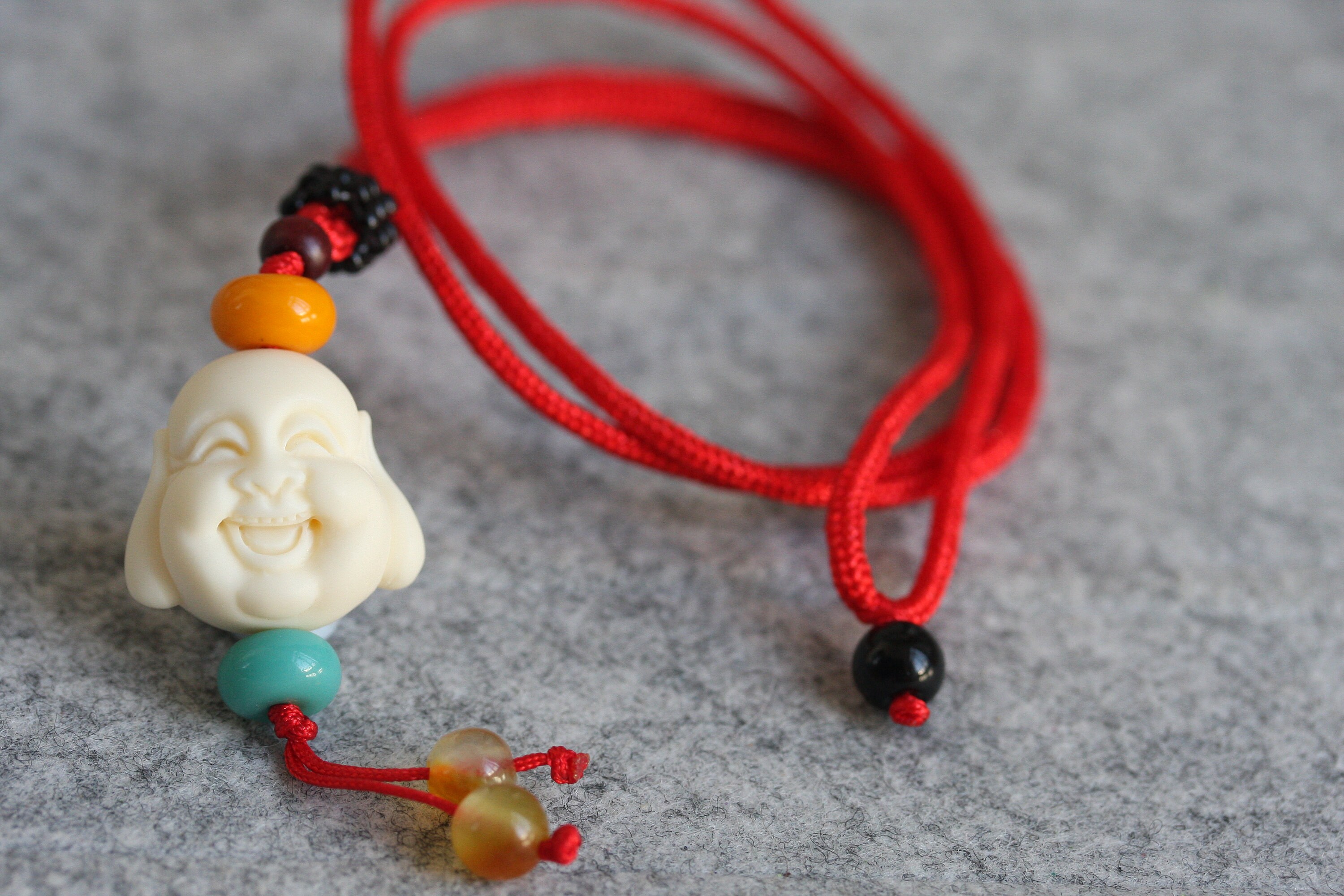 The Laughing Buddha (Budai / 大笑佛) is a beloved symbol of happiness, abundance, and good fortune. Each hand-carved head carries the spirit of joy and generosity, while the handwoven adjustable cord ensures a comfortable fit and symbolizes connection and harmony.
