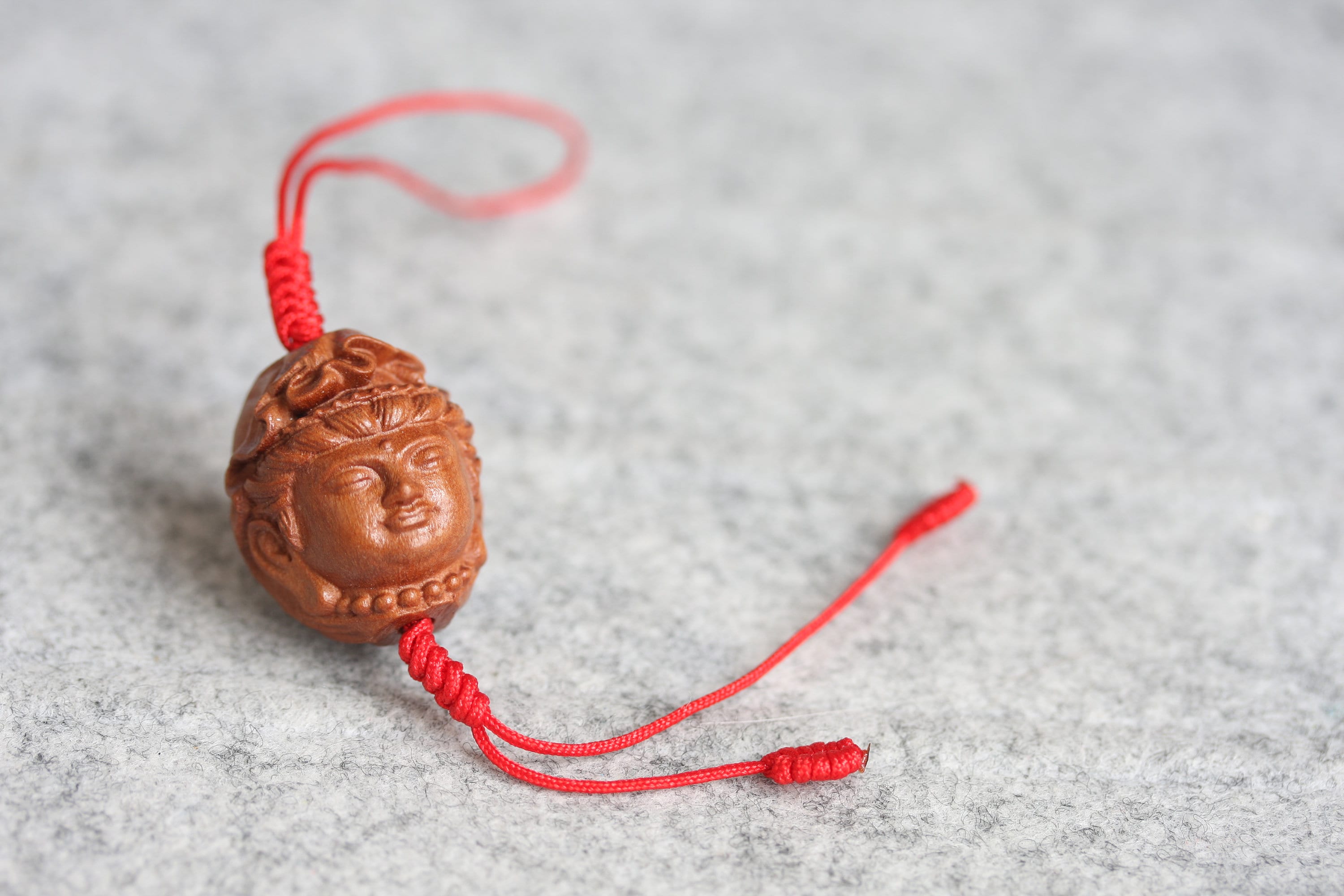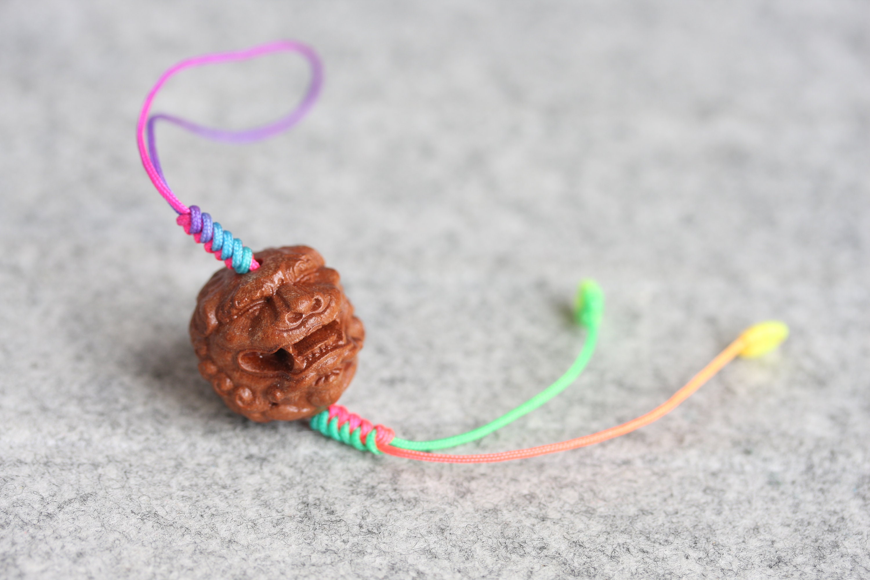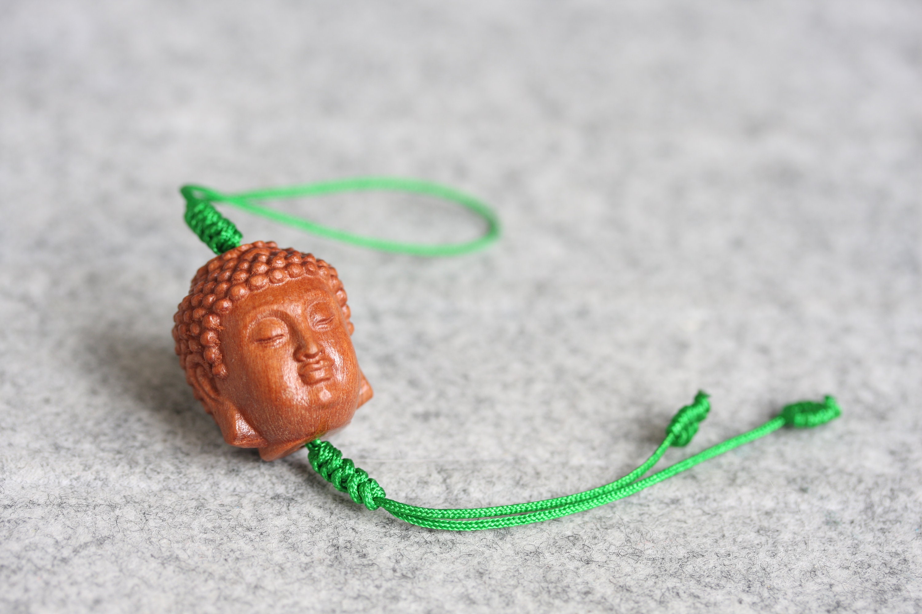 Original design Handmade braided mobile phone charm / keyring , Used hand carved Peach wood Buddhism beads (Four face Buddha, Guan Yin and Rulai Buddha).