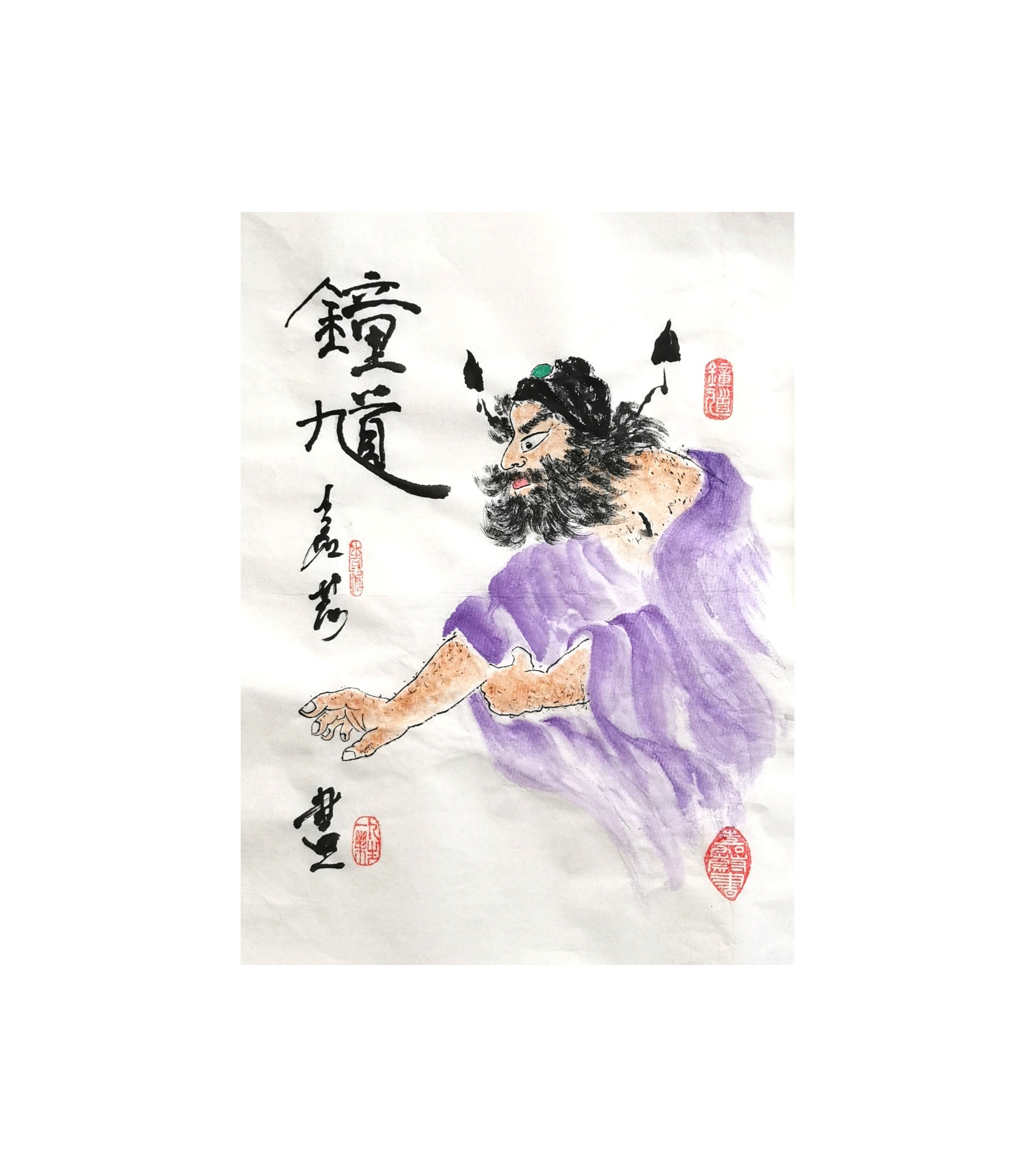 Zhong Kui is often depicted with fierce yeys, a long beard, and a sword in hand - a symbol of justice, protection and moral integrity. In traditional Chinese art, his image is believed to ward off evil and bring peace to the home.